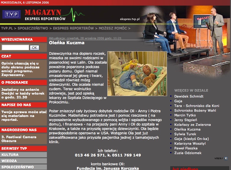 Il suo caso è stato descritto dal sito della TV di stato polacca ad agosto 2005 in un'apposita pagina, di cui mostro una parte qui sotto: